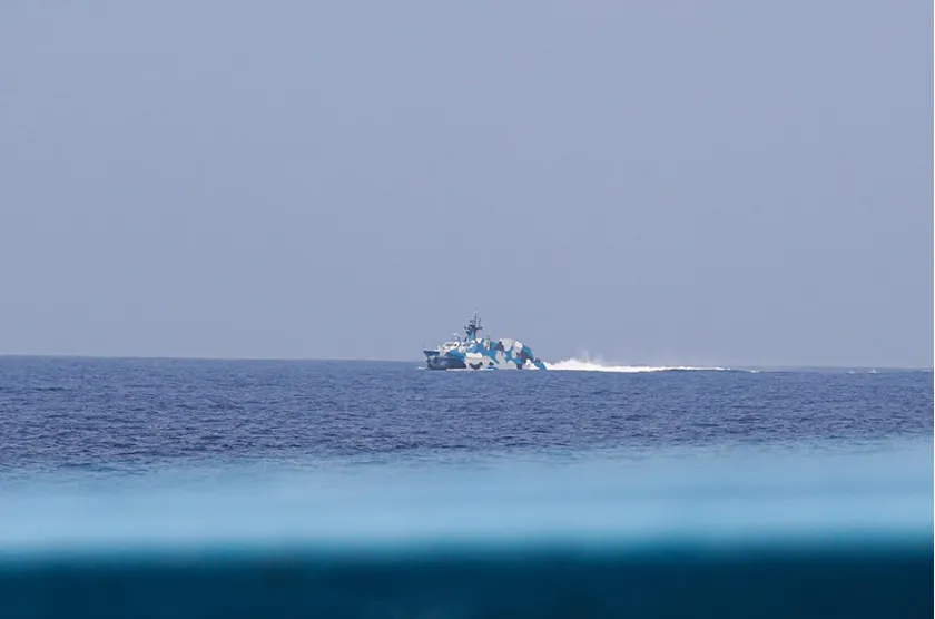 Tàu tấn công nhanh Type 22 lớp Houbei của Trung Quốc được nhìn thấy khi đang truy đuổi một tàu dân sự Philippines ở Trường Sa tuần trước. Ảnh: Tài khoản FB của COLLIN KOR