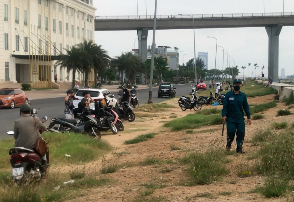 Lực lượng chức năng giải tán người tụ tập tại khu vực khách sạn Da Nang Golden Bay. Ảnh: LÊ PHI