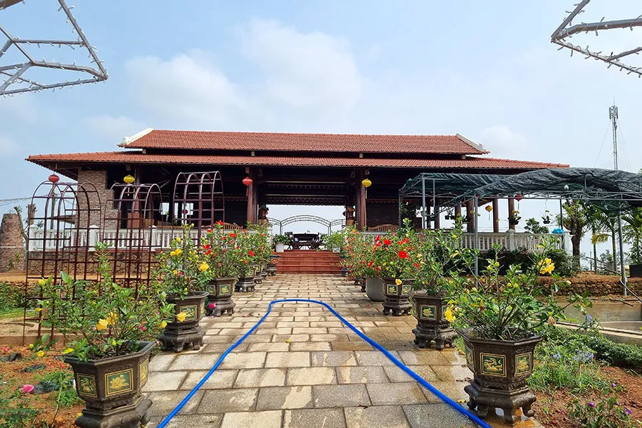 Ông Lê Văn Chương, Chủ tịch UBND xã Tam Thành, cho hay vị trí ông Ninh xây dựng trang trại là đất đấu giá từ nhiều năm trước và hiện đang làm nhà rường, nhà chòi bên trong.