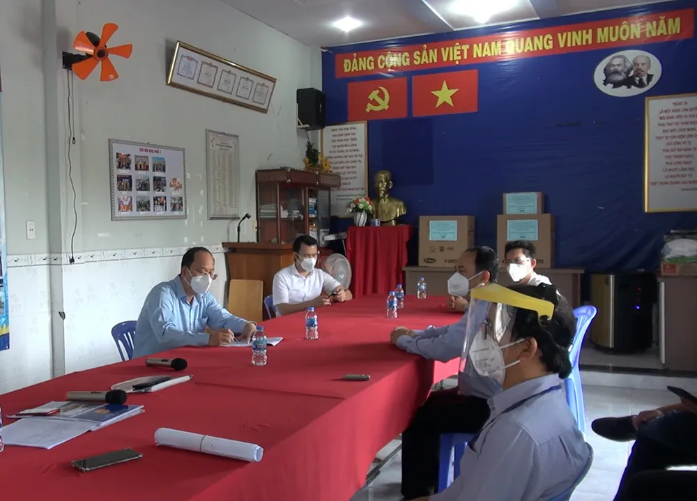 Phó Bí thư đánh giá cao những nổ lực và hiệu quả mang lại khi Khu phố 1 hiện chưa có một ca COVID nào. Ảnh NT