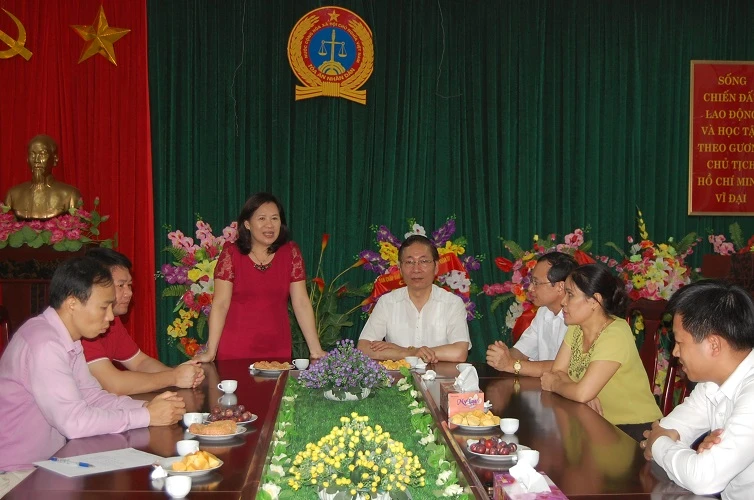 Báo cáo với bà Hiền, ông Phùng Thanh Vân, Phó chánh án TAND tỉnh Tuyên Quang, cho biết tập thể TAND huyện Sơn Dương đã đạt được rất nhiều thành tích và đang được xét tặng Huân chương Lao động hạng nhất.