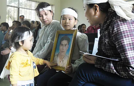 Hiến pháp 2013 quy định: Tính mạng con người được pháp luật bảo hộ. Không ai bị tước đoạt tính mạng trái luật. Trong ảnh: Người thân anh Ngô Thanh Kiều, người bị công an tỉnh Phú Yên đánh chết, tại phiên tòa xét xử năm công an tỉnh Phú Yên dùng nhục hình. Ảnh: TẤN LỘC