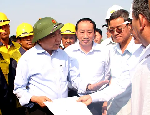 Ông Nguyễn Xuân Phúc đang chỉ đạo đốc thúc tiến độ xây dựng cầu Ghềnh mới tại Đồng Nai. ẢNH: TTXVN