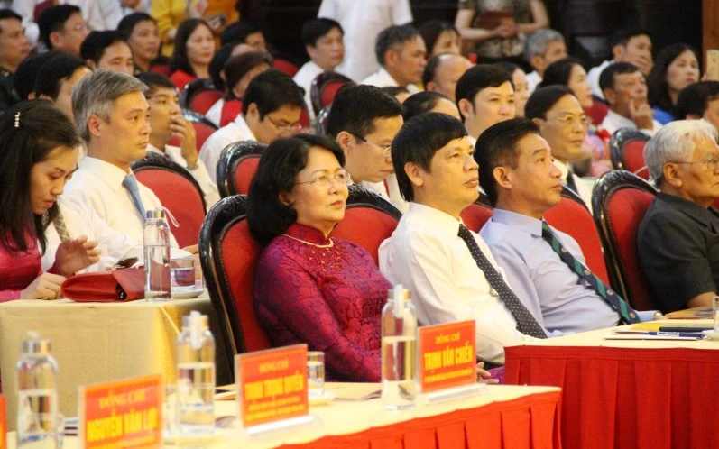 Phó chủ tịch nước Đặng Thị Ngọc Thịnh dự đại hội thi đua yêu nước tỉnh Thanh Hóa lần X. Ảnh: ĐẶNG TRUNG