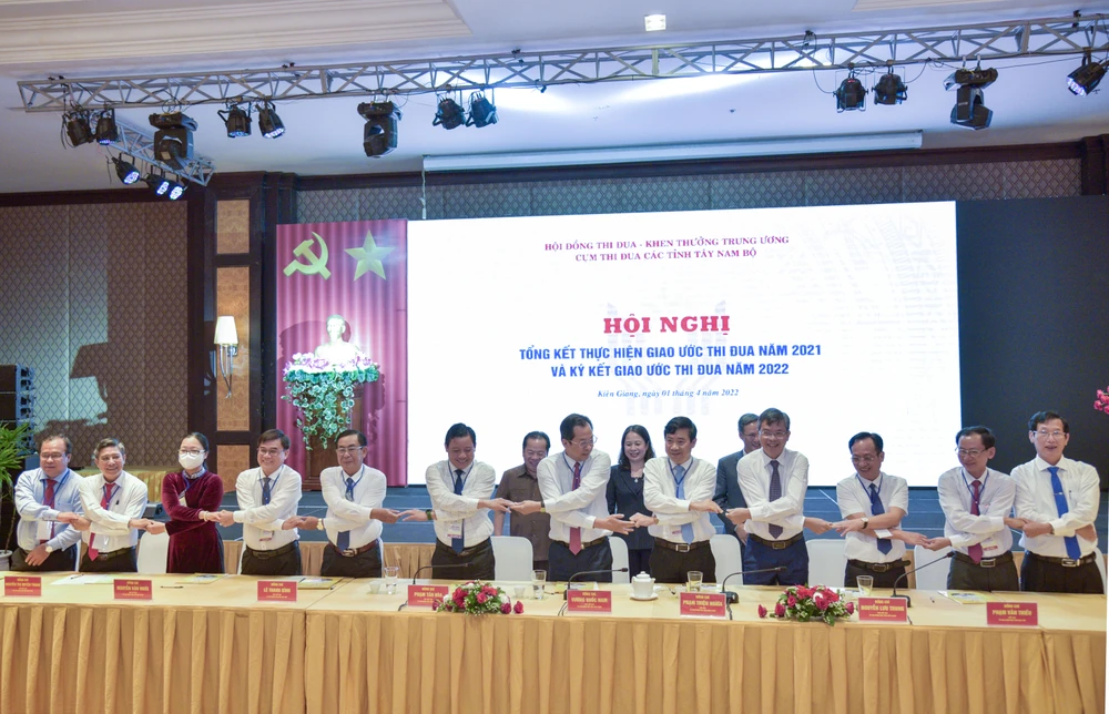 Tại Hội nghị lãnh đạo 12 tỉnh trong Cụm thi đua Tây Nam bộ cũng đã ký kết giao ước thi đua năm 2022. Đó là thực hiện đạt mục tiêu chỉ đạo của Chính phủ “Thích ứng an toàn, linh hoạt, kiểm soát hiệu quả dịch COVID-19, bảo vệ tối đa sức khỏe, tính mạng của người dân”, tận dụng tốt các cơ hội để thúc đẩy phục hồi và phát triển kinh tế - xã hội.