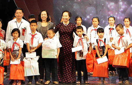 Phó Chủ tịch nước Nguyễn Thị Doan trao học bổng cho các em có hoàn cảnh đặc biệt vươn lên trong học tập tại chương trình. Ảnh: TTXVN