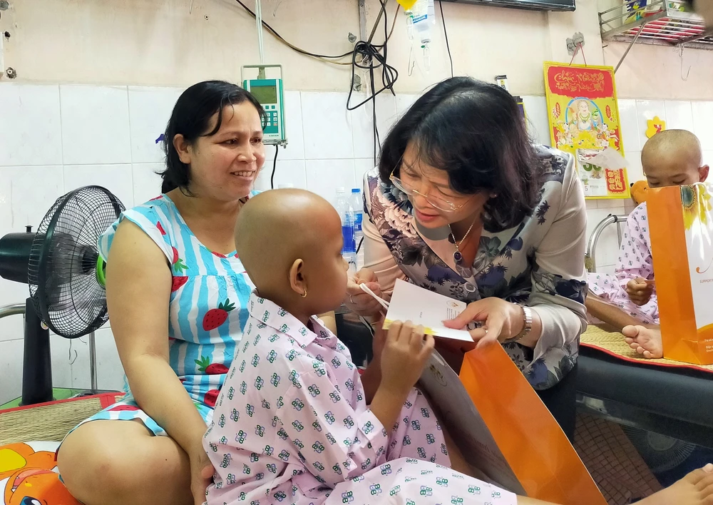 Phó Chủ tịch nước Đặng Thị Ngọc Thịnh tặng quà cho bệnh nhi tại BV Ung bướu TP.HCM. Ảnh: ĐH