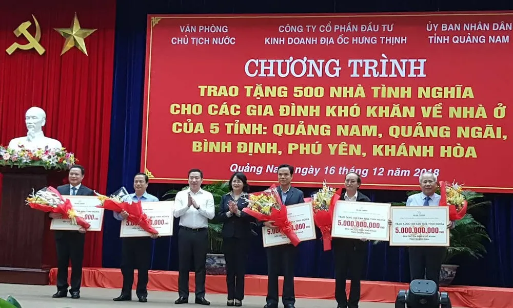 Chiều 16-12, tại TP Tam Kỳ (tỉnh Quảng Nam), Phó Chủ tịch nước Đặng Thị Ngọc Thịnh cùng đoàn công tác đã trao 500 nhà tình nghĩa tặng các gia đình khó khăn về nhà ở tại Quảng Nam, Quảng Ngãi, Bình Định, Phú Yên và Khánh Hòa.