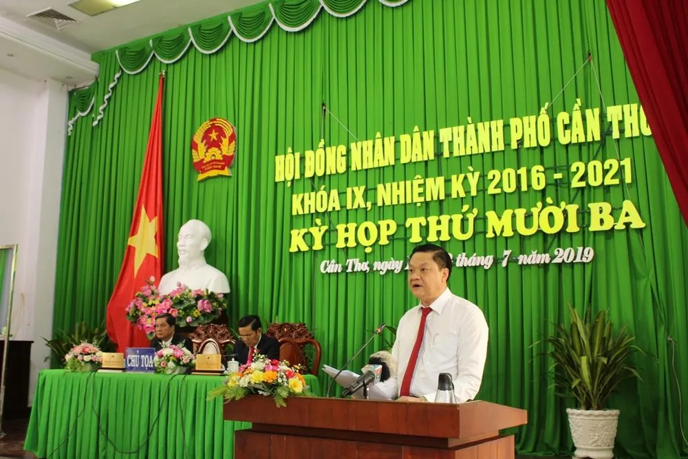 Phó Chủ tịch UBND TP Cần Thơ Dương Tấn Hiển báo cáo tại kỳ họp. Ảnh: NN
