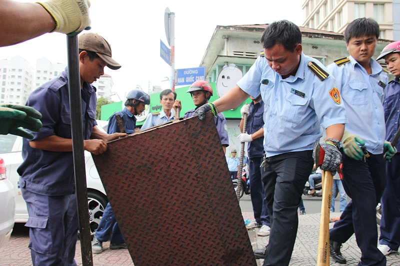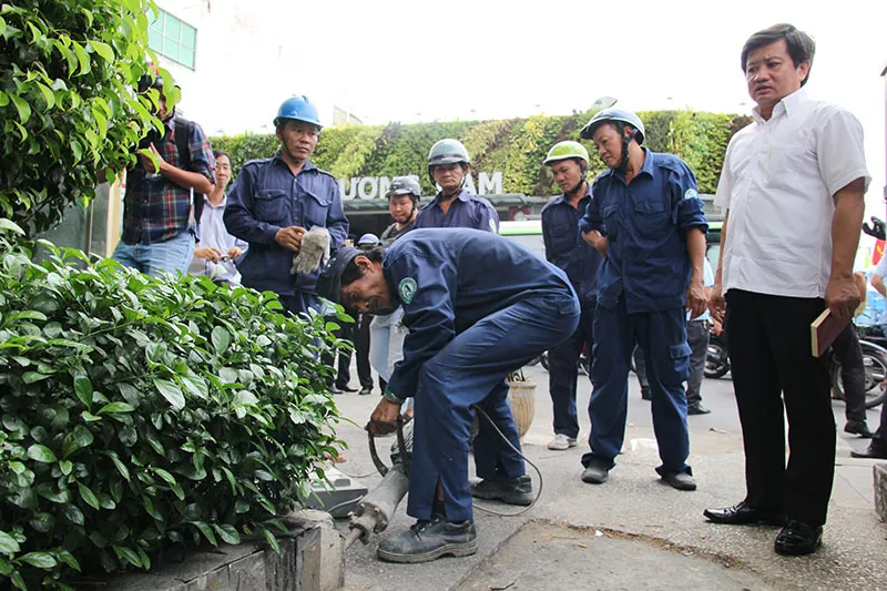 Bậc lên xuống trái phép bị đích thân lãnh đạo quận 1 yêu cầu đập bỏ ngay tại chỗ để lấy lại lối đi cho người dân