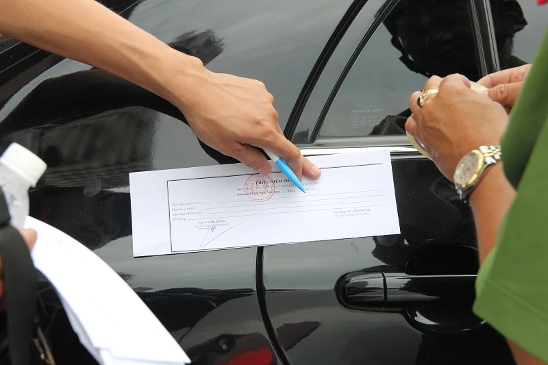 Sau hơn 30 phút chủ xe vi phạm không xuất trình giấy tờ, ông Hải yêu cầu niêm phong xe, điều xe cẩu về trụ sở.