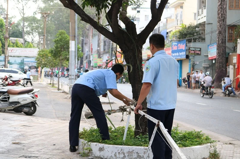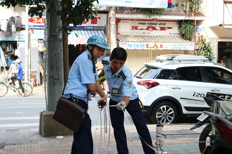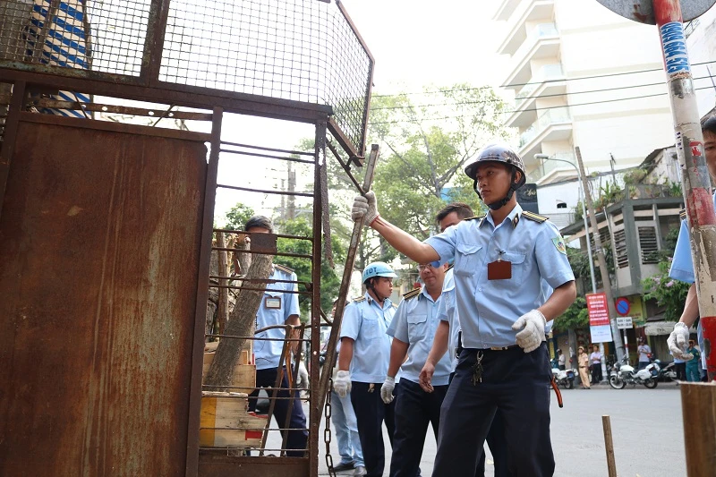 Sáng nay (13-3), dưới sự chỉ đạo của ông Lê Quốc Tuấn, Phó Chủ tịch UBND quận 5, lực lượng chức năng của quận đã tiến hành kiểm tra và dẹp vỉa hè trên suốt tuyến đường Trần Phú.