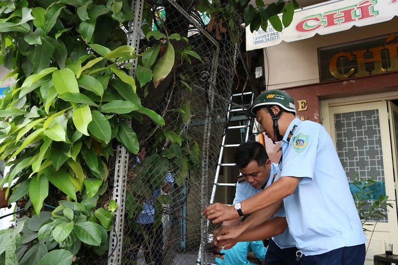 Xử lý một cây xanh trước nhà người dân. Ảnh: THANH TUYỀN