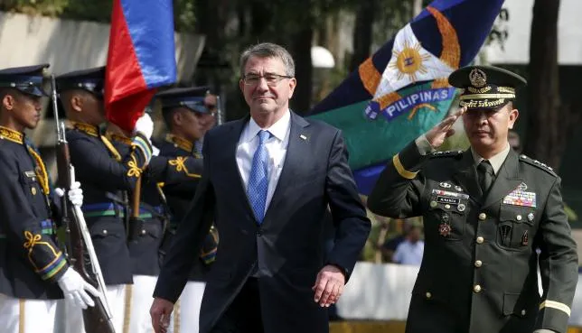 Bộ Trưởng Bộ Quốc phòng Ash Carter tại cuộc tập trận chung Balikatan. (Ảnh: Reuters)