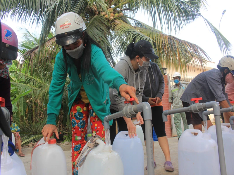 Ảnh hưởng hạn mặn mùa khô năm 2019-2020 khiến hàng chục ngàn hộ dân Bến Tre thiếu nước ngọt sử dụng. Ảnh: ĐÔNG HÀ