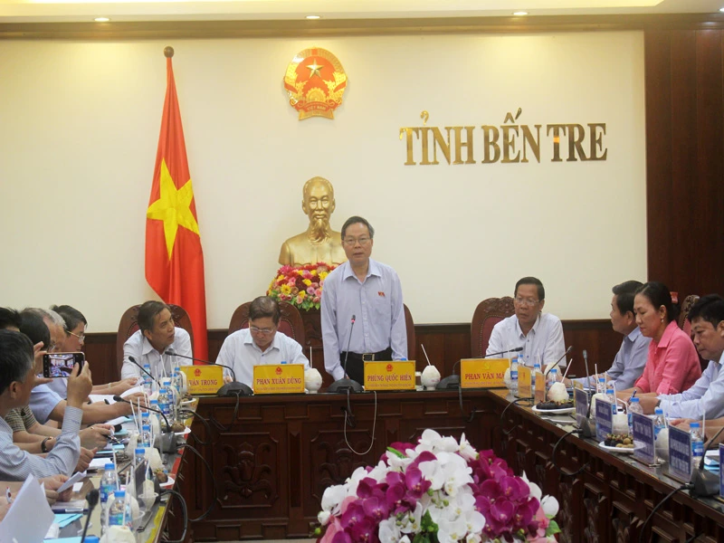 Phó Chủ tịch QH Phùng Quốc Hiển làm việc tại Bến Tre. Ảnh: ĐÔNG HÀ
