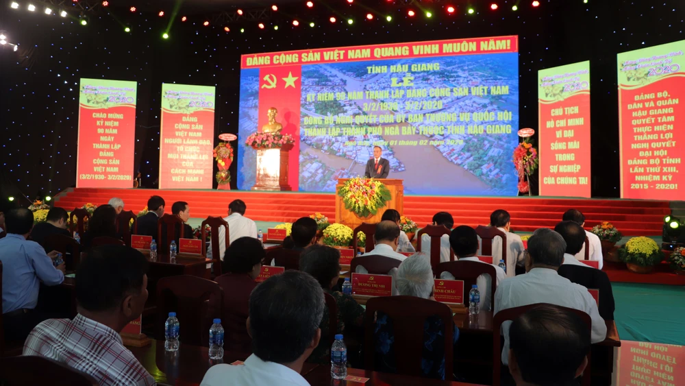 Ngày 1-2, Tỉnh ủy Hậu Giang tổ chức Lễ kỷ niệm 90 năm ngày thành lập Đảng Cộng sản Việt Nam và công bố nghị quyết của Ủy ban Thường vụ Quốc hội về thành lập TP Ngã Bảy thuộc tỉnh Hậu Giang.