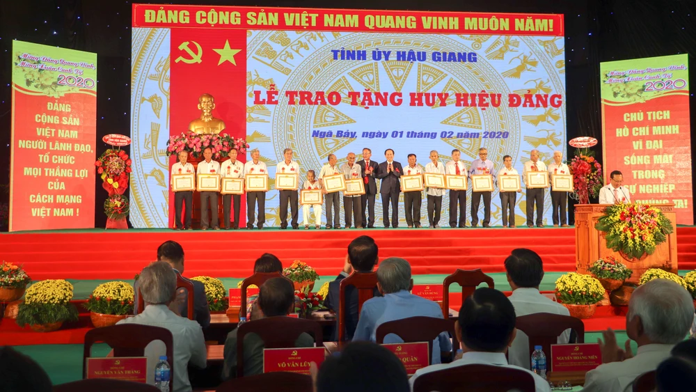 Dịp này, Tỉnh ủy Hậu Giang cũng trao huy hiệu 30 năm đến 60 năm tuổi Đảng cho 103 đảng viên. Ảnh: CHÂU ANH