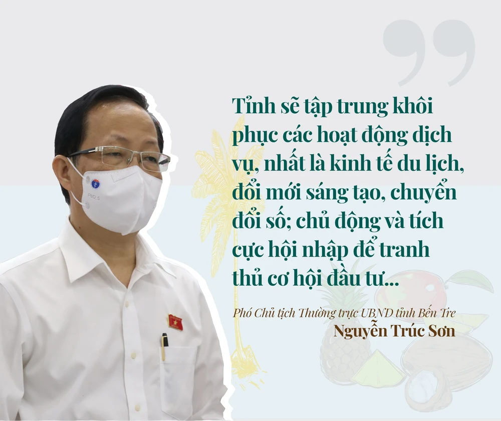 Bến Tre cũng sẽ thực hiện quyết liệt giải pháp về chính sách thuế, tín dụng để tạo điều kiện cho doanh nghiệp (DN), người dân phục hồi hoạt động sản xuất, kinh doanh. Đẩy nhanh tiến độ giải ngân các nguồn vốn đầu tư, nhất là đầu tư công và hỗ trợ triển khai các dự án đầu tư ngoài ngân sách (các dự án phát triển đô thị, điện gió, khu công nghiệp, hạ tầng giao thông, thủy lợi...).