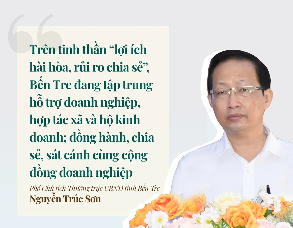 Trên tinh thần “lợi ích hài hòa, rủi ro chia sẻ”, Bến Tre đang tập trung hỗ trợ DN, hợp tác xã và hộ kinh doanh, tỉnh luôn đồng hành, chia sẻ, sát cánh cùng cộng đồng DN.