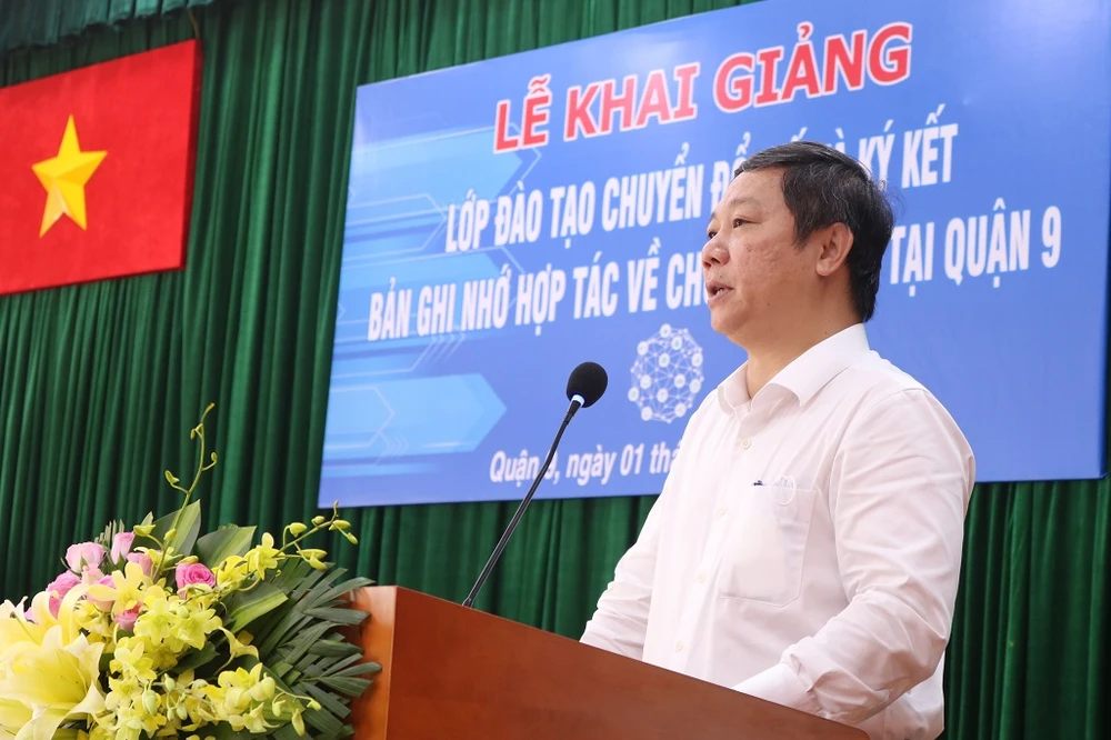 Trong sáng nay, Chủ tịch UBND quận 9 cũng tuyên bố chính thức khai giảng lớp học về chuyển đổi số đầu tiên của quận. Ông yêu cầu các học viên tạm quên chức vụ của mình để thấy được trách nhiệm của học viên khi tham gia vào lớp học, phải tập trung học tập, cầu thị nghiêm túc để thật sự thu được những kiến thức hiệu quả, bổ ích, phục vụ cho công việc và quá trình phát triển của quận.