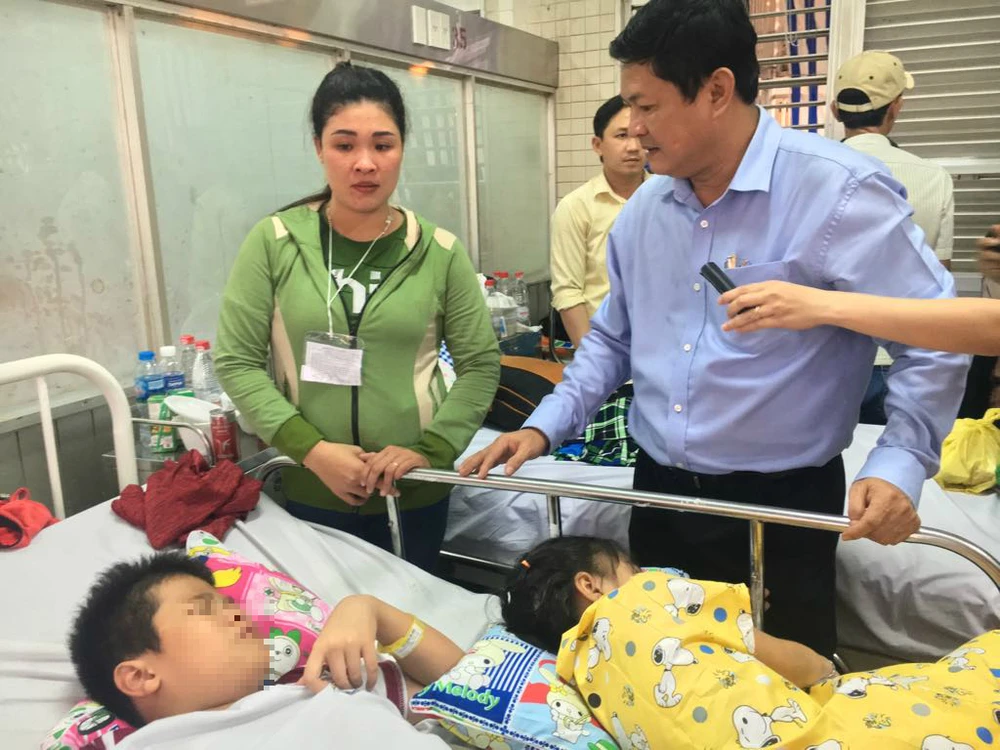 Ông Huỳnh Cách Mạng đã gửi lời thăm hỏi tình hình sức khỏe của các em học sinh, đồng thời chia sẻ động viên gia đình yên tâm chăm sóc các em. Ông cũng trao đổi với bệnh viện cần quan tâm chăm sóc giúp các em sớm hồi phục.