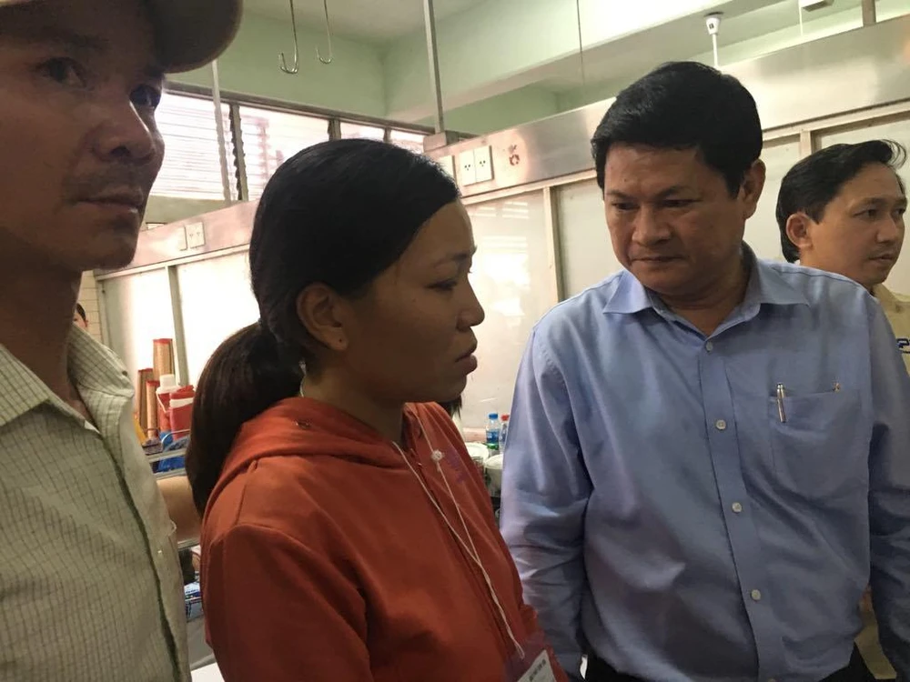 Ông Huỳnh Cách Mạng thăm hỏi và động viên gia đình yên tâm chăm sóc các em học sinh tại BV Chợ Rẫy. Ảnh: HL