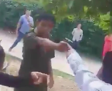 Phó trưởng công an xã rút súng chĩa vào người dân (Ảnh chụp màn hình).