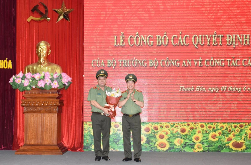 Chiều ngày 8-6, Bộ Công an phối hợp với Thường trực Tỉnh ủy Thanh Hóa tổ chức Lễ công bố quyết định của Bộ trưởng Bộ Công an về điều động, bổ nhiệm cán bộ.