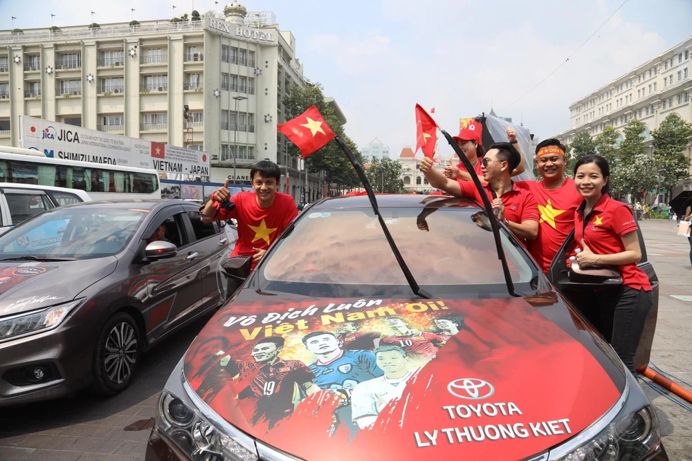 Nhóm BMW và Toyota Lý Thường Kiệt đã lập thành nhóm và chạy xe ra đường Nguyễn Huệ để cổ vũ cho U-23 Việt Nam.