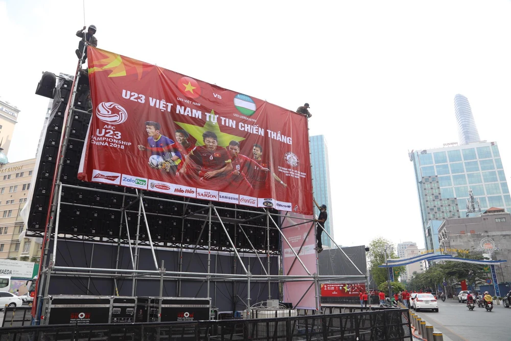 10 màn hình lớn đã sẵn sàng trực tiếp trận đấu của U-23 Việt Nam.
