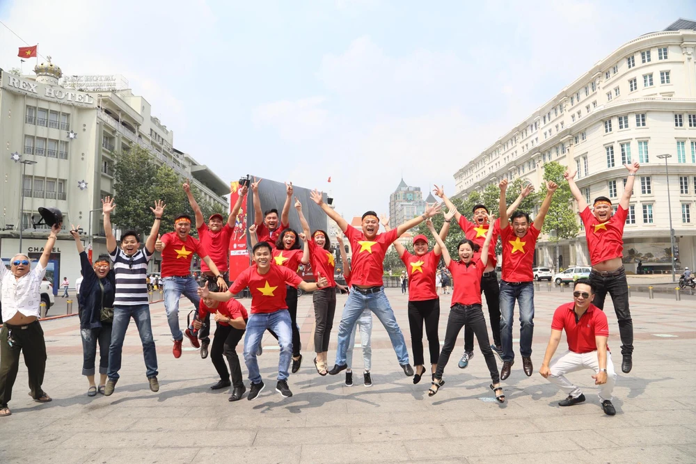 13 giờ, rất đông người hâm mộ đã có mặt ở phố đi bộ Nguyễn Huệ.