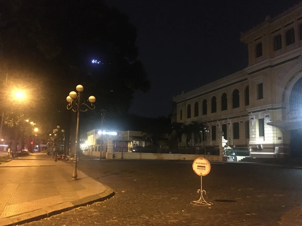 Vỉa hè trước Bưu điện TP ngày trước khá đông bạn trẻ tới chụp ảnh, dừng chân nay vắng lặng. Ảnh: NGUYỄN TRÀ
