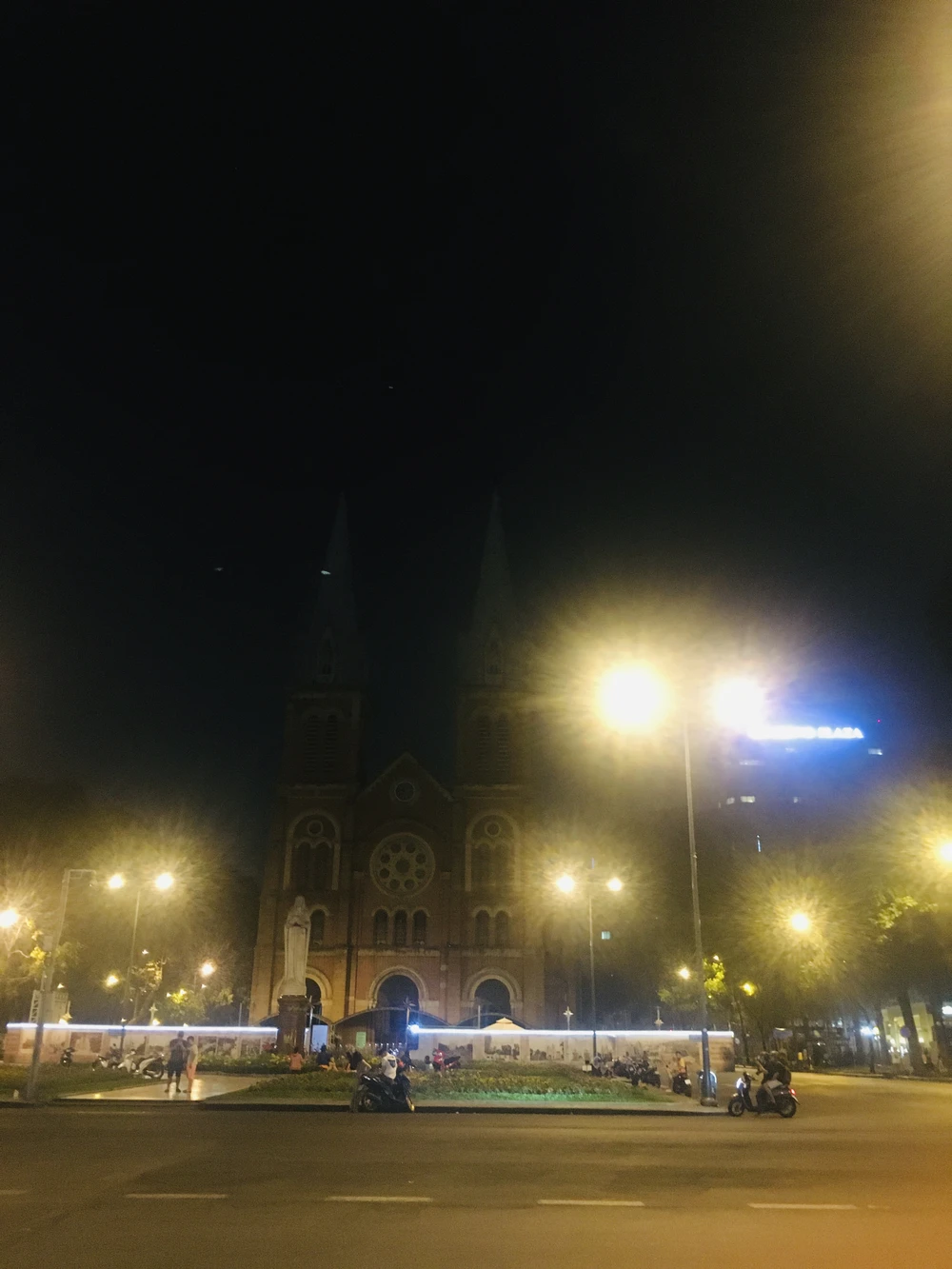 Bên hông nhà thờ Đức Bà tối 27-3. Ảnh: NGUYỄN TRÀ