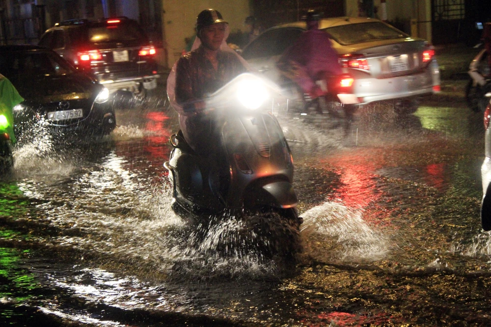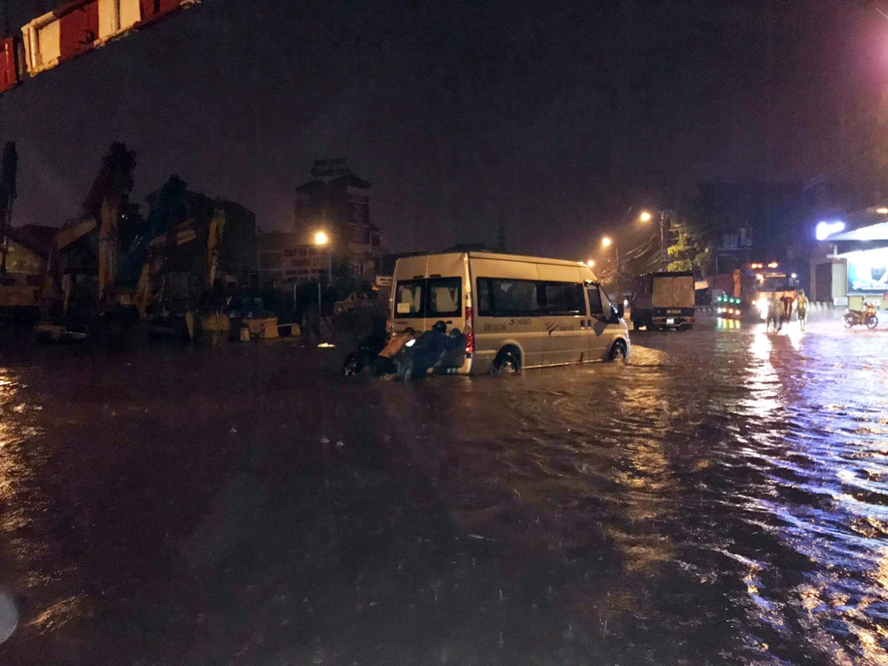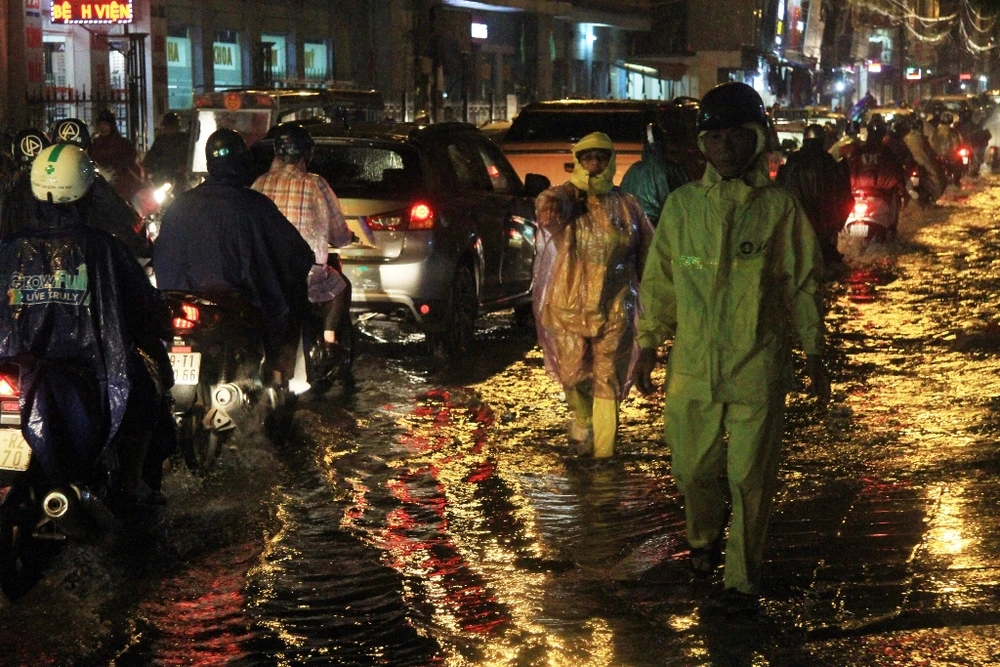 Giao thông có lúc hỗn loạn vì ngập nước.