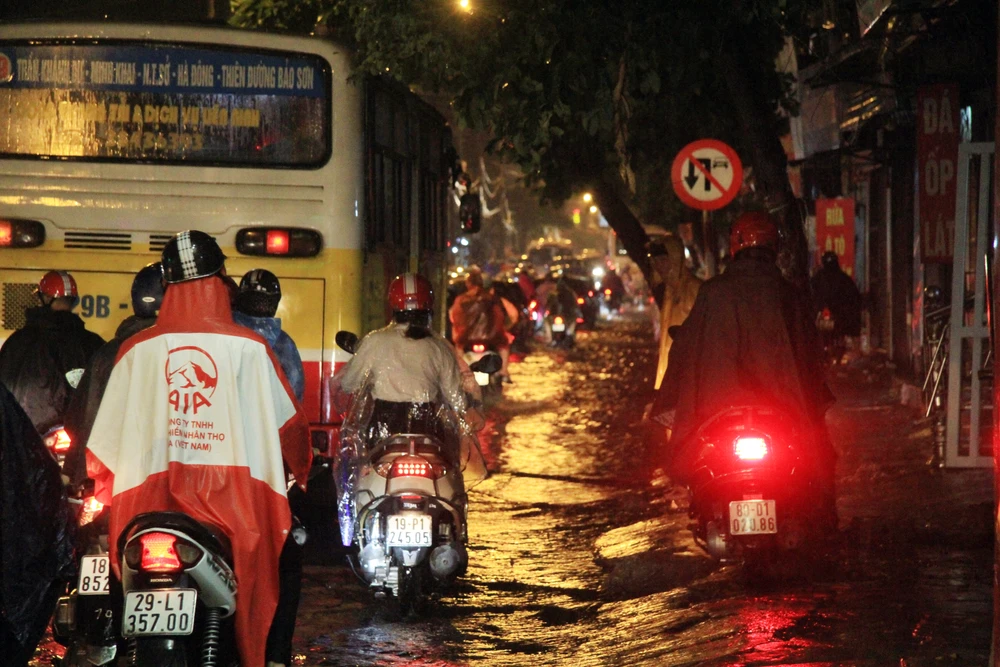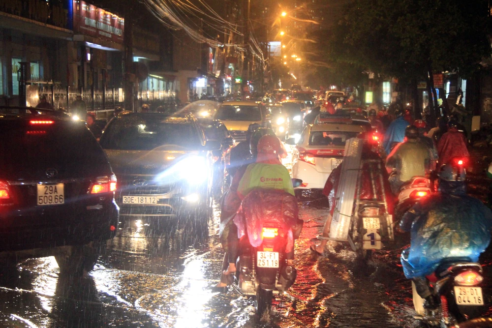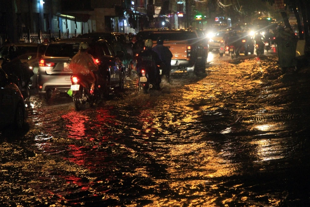 Trận mưa rào chiều tối nay tại Hà Nội khiến nhiều con phố ngập nước lênh láng.