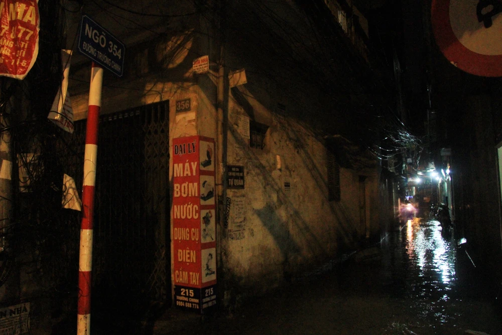 Tại con ngõ nhỏ do mưa lớn, lượng nước cũng ùn ứ lênh láng khắp đường..