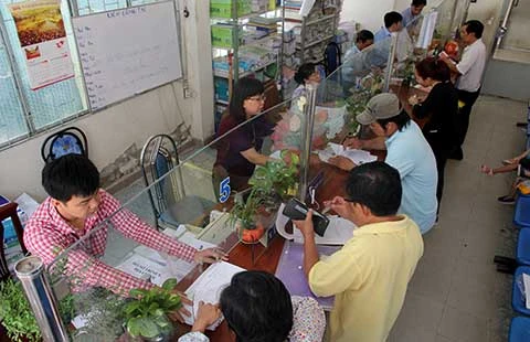 Cán bộ xã Bình Hưng làm việc quá giờ nghỉ trưa vì đông người dân đến làm thủ tục hành chính. Ảnh: HOÀNG GIANG