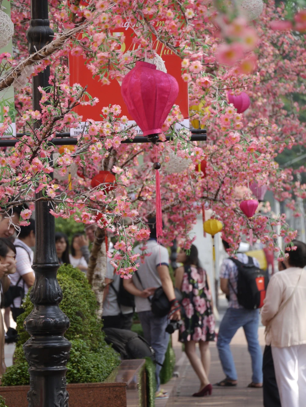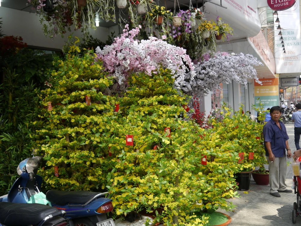 Dạo quanh các con đường ở trung tâm Sài Gòn như: Lê Duẩn, Lê Lợi, Đồng Khởi, Hai Bà Trưng, Ba Tháng Hai,…trong thời gian này rất dễ dàng để bắt gặp các cành đào, cành mai được trang trí dọc đường cùng nhau khoe sắc.
