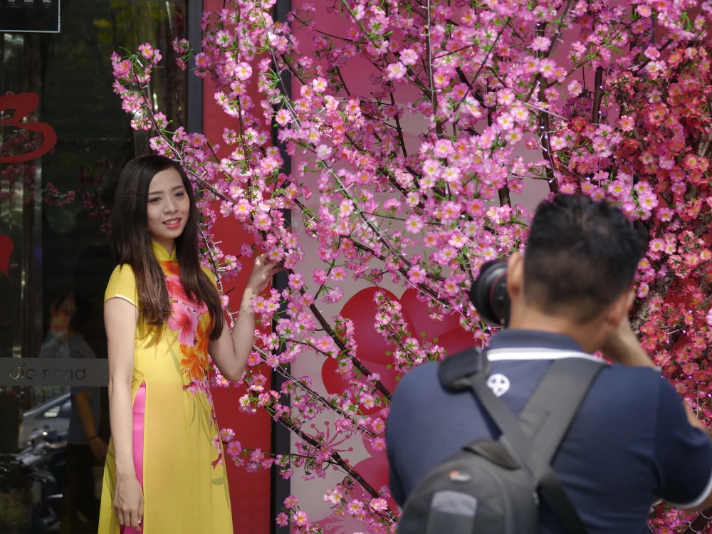 Các du khách nước ngoài cũng lưu lại kỷ niệm trước thềm năm mới ở Việt Nam.