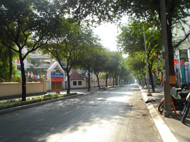 Đường Hòa Hoa Thám ngày thường hàng trăm phương tiện thường xếp hàng dài chờ đèn đỏ nhưng nay bình yên, đẹp cổ kính.