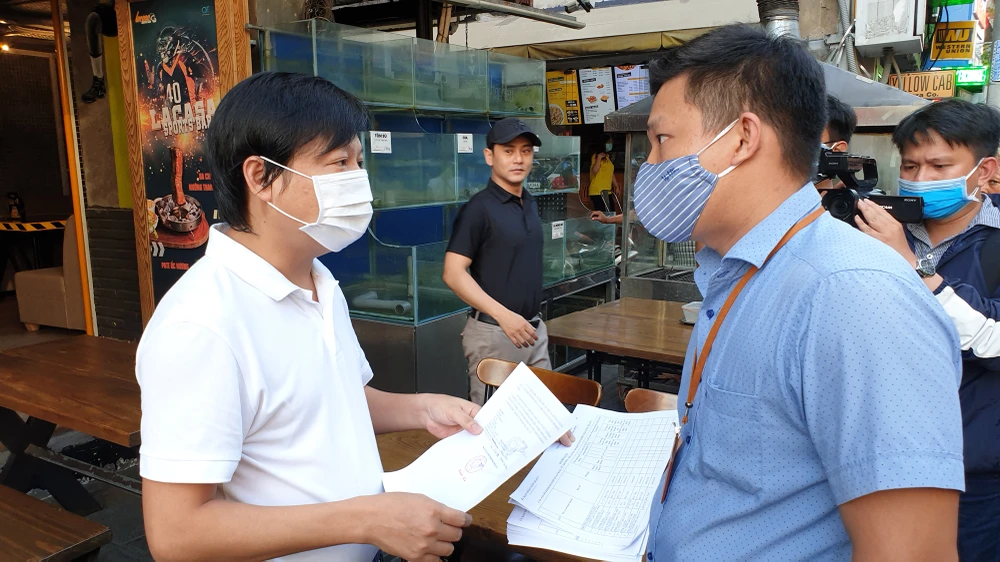 Anh Võ Quốc Thanh, chủ cơ sở kinh doanh trên đường Bùi Viện sau khi được các cán bộ UBND phường giải thích việc đóng cửa, tạm ngừng kinh doanh thì đã chấp thuận vui vẻ.