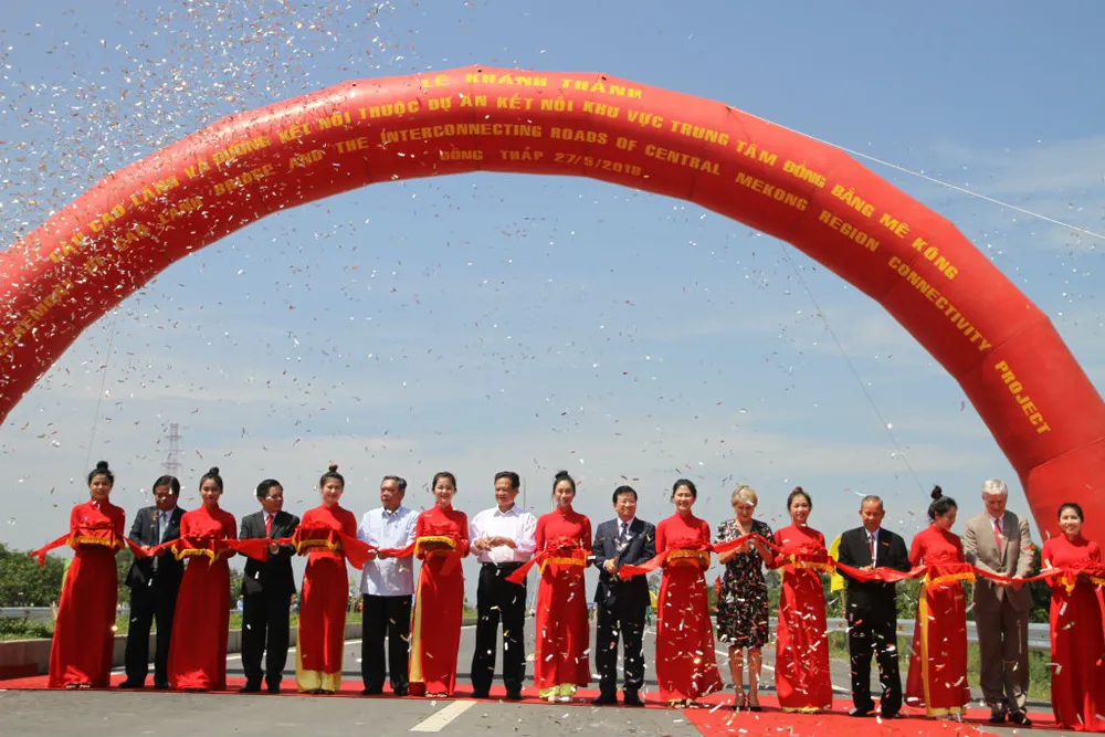 Đến 10 giờ 30 cùng ngày, Phó Thủ tướng Trịnh Đình Dũng cùng bà Julie Bishop, Bộ trưởng Bộ Ngoại giao và Thương mại Australia và các vị lãnh đạo trung ương, bộ ngành cùng cắt băng khánh thành cầu Cao Lãnh và tuyến nối cầu Cao Lãnh - cầu Vàm Cống thuộc dự án Kết nối khu vực trung tâm đồng bằng Mê kông. Sau đó các đoàn ô tô đầu tiên chầm chậm lăn bánh qua cầu.
