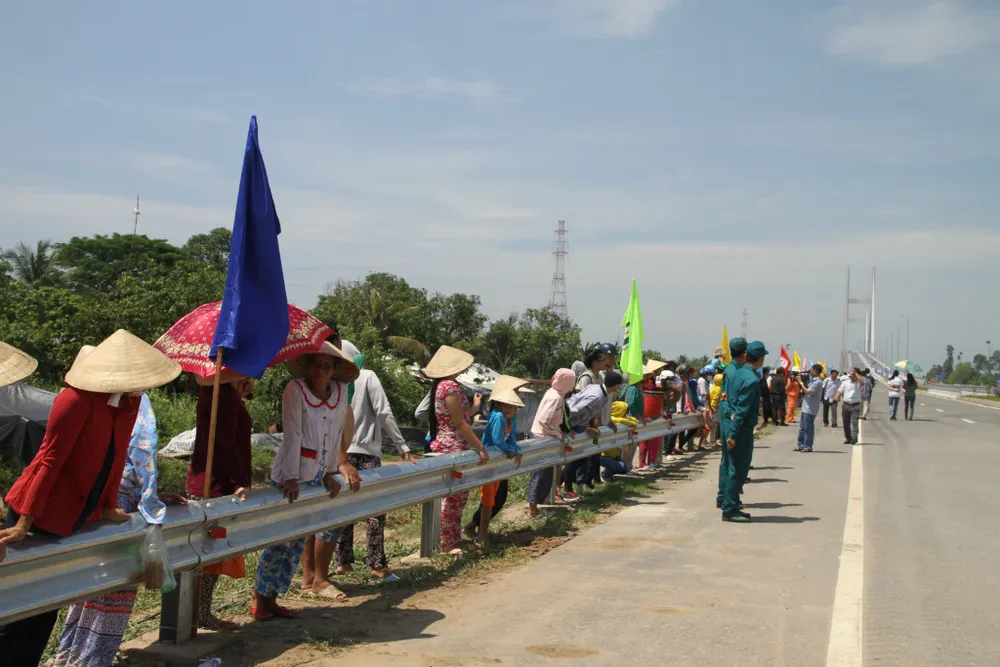 Ngay từ rất sớm nhiều người dẫn đã tập trung khu vực đường dẫn cầu để chứng kiến thời khắc hai bờ sông Tiền trên địa phận Đồng Tháp được nối liền.