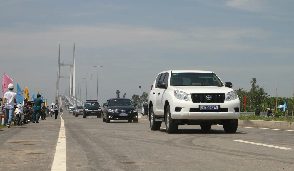 Sau đó các đoàn ô tô đầu tiên chầm chậm lăn bánh qua cầu.