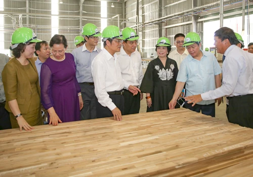 Các đại biểu xem sản phẩm của Nhà máy chế biến gỗ Nghệ An