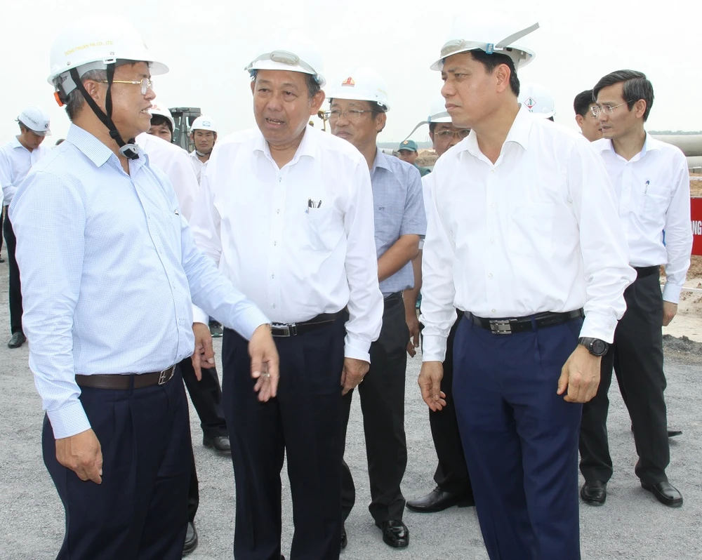 Phó Thủ tướng kiểm tra thực tế công tác giải phóng mặt bằng dự án sân bay. Ảnh: VH.