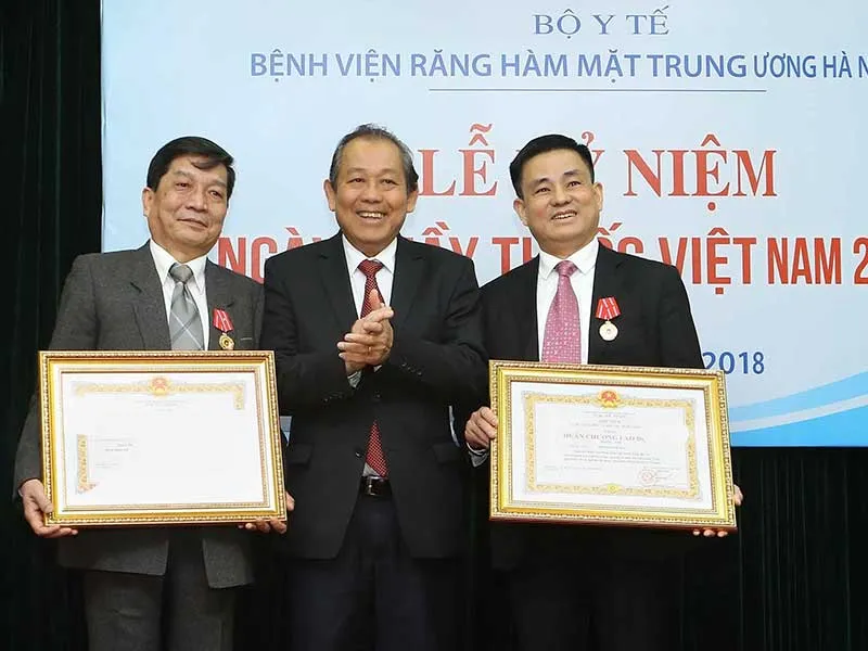 Nhân dịp này, Phó Thủ tướng Thường trực Chính phủ Trương Hòa Bình đã trao tặng huân chương Lao động hạng Nhì, hạng Ba cho Giám đốc BV Răng Hàm Mặt Trung ương Hà Nội Trịnh Đình Hải và nguyên Phó Giám đốc BV Vũ Đình Minh; chín thầy thuốc của BV đã được trao tặng danh hiệu Thầy thuốc ưu tú; hai thầy thuốc được trao tặng bằng khen của Thủ tướng Chính phủ.