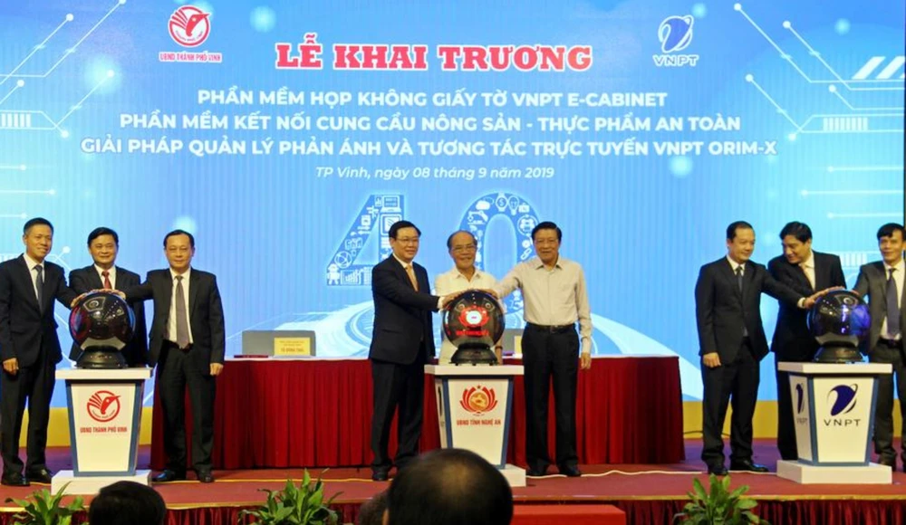 Công bố khai trương các sản phẩm công nghệ thông tin của Tập đoàn VNPT tài trợ cho TP Vinh. Ảnh: NTV