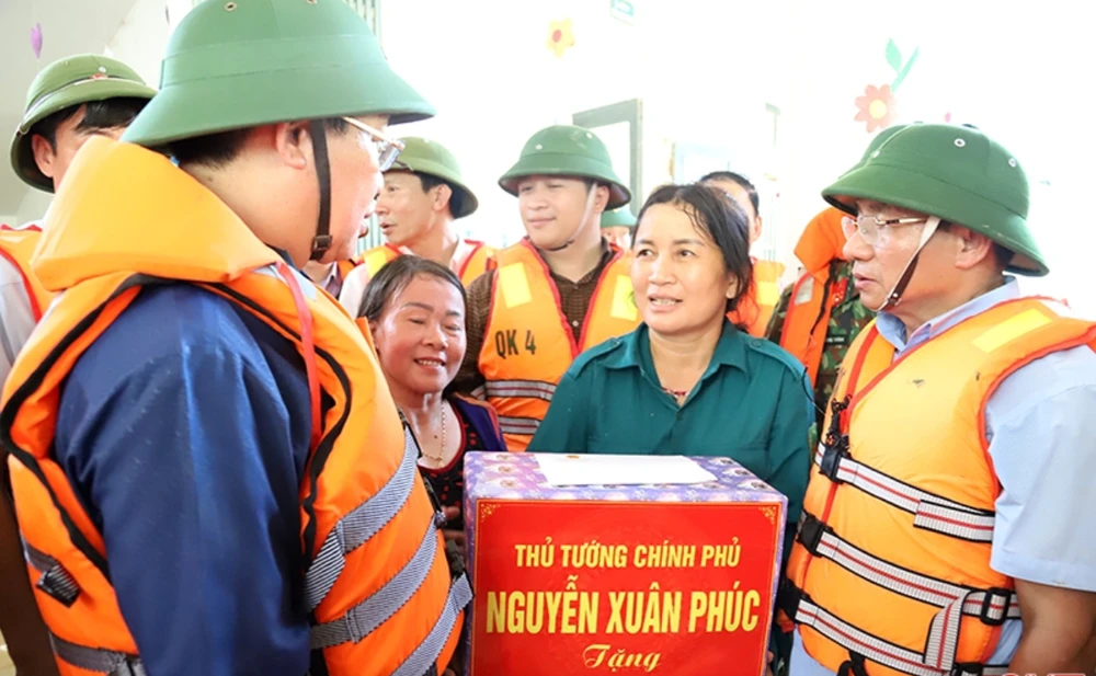Chiều 7-9, Phó Thủ tướng Vương Đình Huệ cùng đoàn công tác của Chính phủ đã đi thuyền vào động viên, thăm hỏi bà con nhân dân ở vùng rốn lũ huyện Hương Khê (Hà Tĩnh).